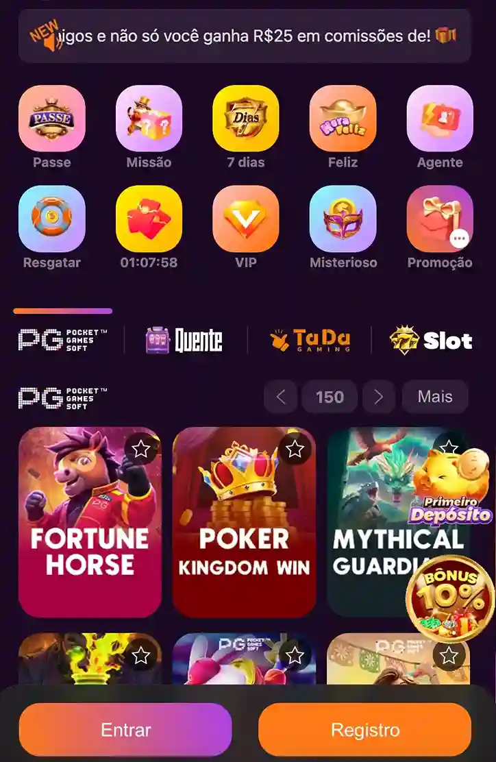 Todos! Você encontrará slots populares, jogos de cassino ao vivo com crupiês reais, crash games como o Aviator, e muito mais.